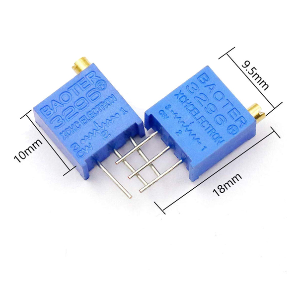 POT 3296 W103 Potentiometer 10k 100k also known as a trim pot, is a type of variable resistor or adjustable potentiometer. It adjusts , tune, and calibrate circuits. These trimmer resistors are often uses initially to calibrate equipment after manufacturing.
