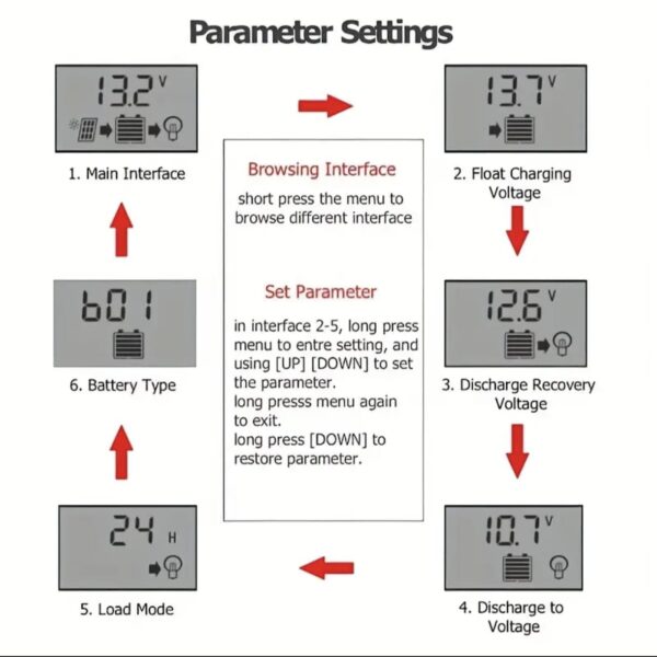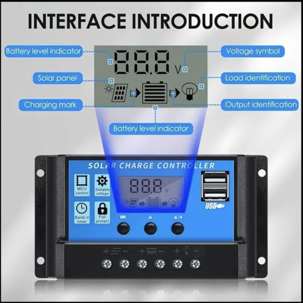 This is a Digital PWM Solar Charge Controller for the lead-acid batteries connected to a solar power system. When connected to the battery, this charge controller automatically detects the battery voltage from 12V-24V. This charge controller has some advanced features like built-in short circuit protection, open-circuit protection, reverse voltage protection, overload protection, etc which makes it ideal for grid power systems.
